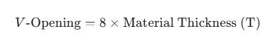 Για τον τυπικό μαλακό χάλυβα, ο γενικός εμπειρικός κανόνας για την επιλογή του ανοίγματος V-die είναι:
