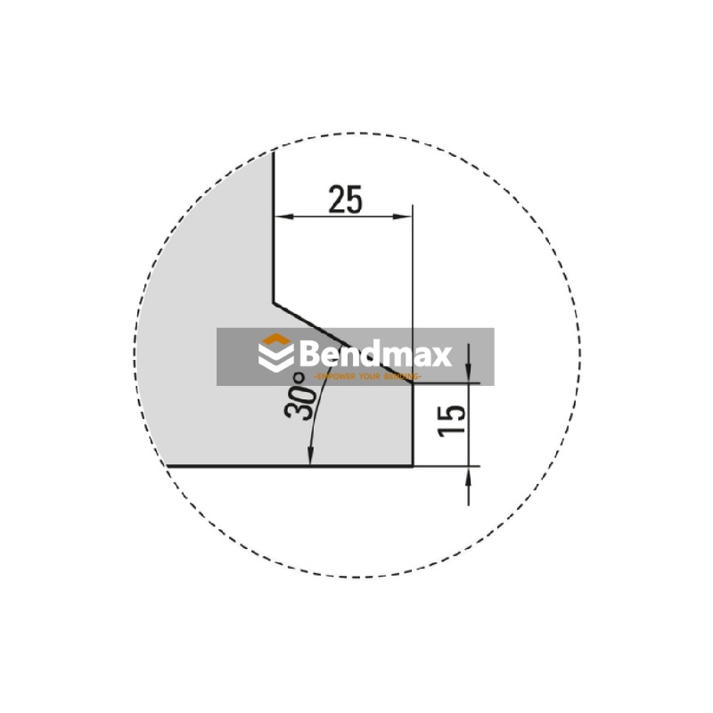 Σχεδιασμένο για στενή οξεία γωνία κάμψης, αυτή η μήτρα επιτρέπει την παραγωγή ακριβών προφίλ με αιχμηρή γωνία. Υποστηρίζει επίσης μέγιστη ικανότητα φορτίου κατά την κάμψη 90°, καθιστώντας το μια ευέλικτη λύση τόσο για οξείες όσο και για συμβατικές εργασίες κάμψης.