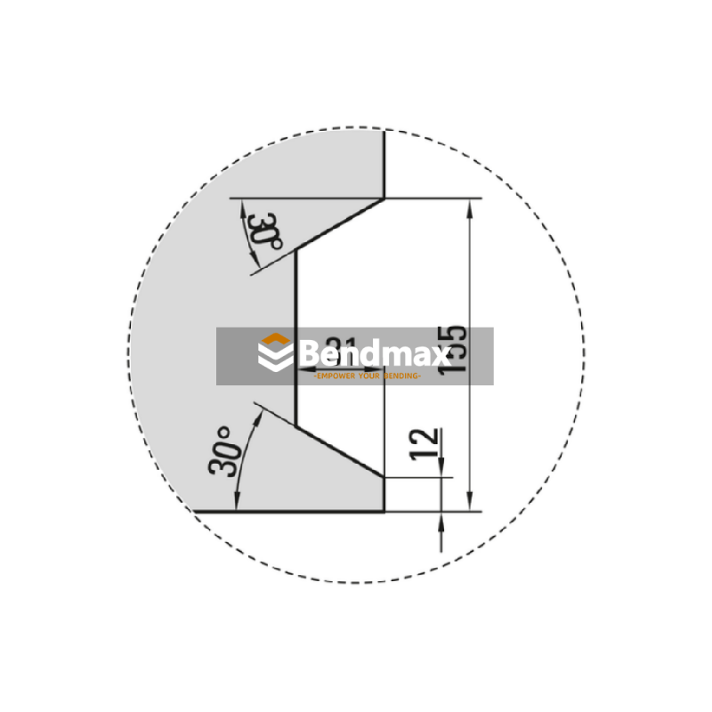 Σχεδιασμένο για στενή οξεία γωνία κάμψης, αυτή η μήτρα επιτρέπει την παραγωγή ακριβών προφίλ με αιχμηρή γωνία. Υποστηρίζει επίσης μέγιστη ικανότητα φορτίου κατά την κάμψη 90°, καθιστώντας το μια ευέλικτη λύση τόσο για οξείες όσο και για συμβατικές εργασίες κάμψης.